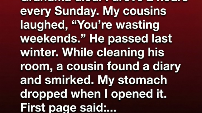 After my grandmother died, the house felt emptier—quieter, heavier, as if a piece of it had disappeared. Grandpa chose to remain there alone, surrounded by memories only he could truly feel. Every Sunday, I made the two-hour drive to see him. Sometimes we talked for hours; other times, we simply sat together in silence, sharing tea and the comfort of presence. My cousins didn’t understand. They joked that I was wasting my weekends, that there were better ways to spend my time than sitting in an old house with an old man. I never argued—some things don’t need explaining.