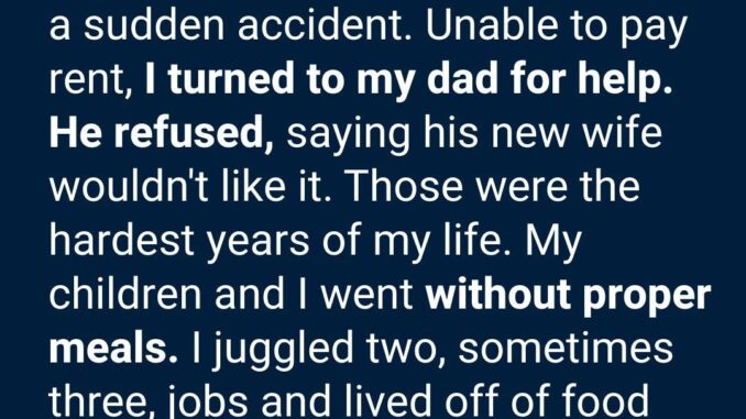 I earned barely above minimum wage, and every month felt like walking a tightrope. Rent or groceries. Heat or diapers. Gas for work or enough food for the week. I learned just how fragile stability could be, how quickly life could unravel. With nowhere else to turn, I swallowed my pride and went to the one person I thought would never let me fail—my father.