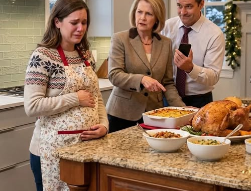 By the time I was seven months pregnant, things had become increasingly difficult. On Christmas Eve, I spent the entire day in the kitchen preparing dinner for a large family gathering while my husband entertained guests in the dining room. I moved carefully from one task to another, exhausted but determined to make the evening perfect. When the meal was finally ready, the table looked beautiful—crystal glasses, polished silverware, and festive decorations. Yet despite all the effort, the mood toward me felt cold. Small complaints about the food and my pace filled the room, and when I quietly asked if I could sit down for a moment because my back hurt, my request was brushed aside. In that moment, it became clear how little support I truly had from the people who were supposed to care about me.