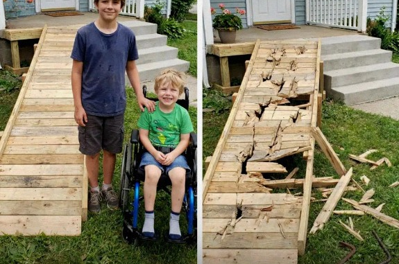 We knocked, and Caleb’s mother, Renee, answered. She looked exhausted but kind. When we asked, she explained that Caleb would love to play outside, but without a ramp, he had to be carried every time—and they simply couldn’t afford to build one. Insurance wouldn’t cover it.