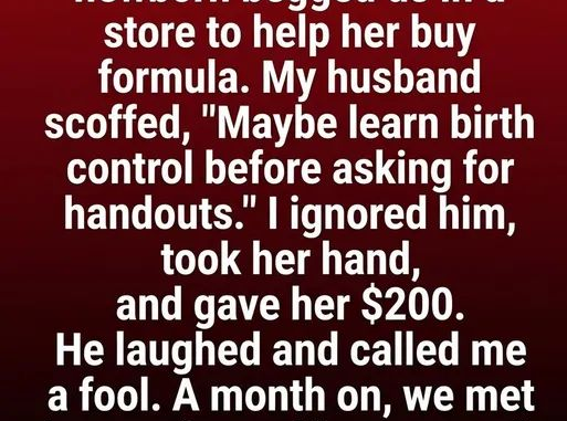 I stepped closer, placing my hand gently over hers. No words, no lectures—just a shared understanding that sometimes people need compassion more than judgment. I gave her the money, not as charity, but as a reminder that she was seen. Tears welled in her eyes—not desperation, but relief. She whispered a thank you, clutching her baby a little tighter, as if the world had softened for just a moment. Behind me, my husband shook his head, calling it foolish, but I felt nothing of the sort—I felt certain.