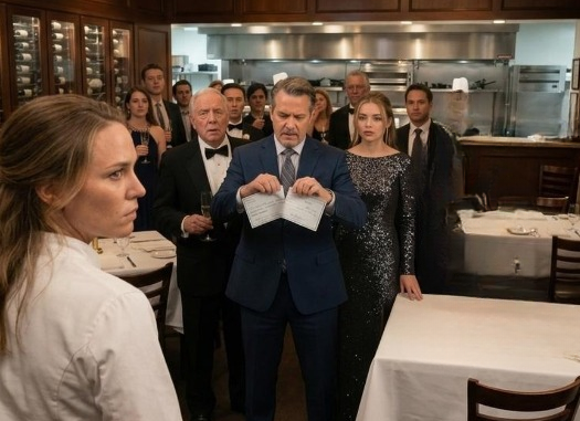 Claire Bennett had spent three years turning her father’s struggling steakhouse into a modern, celebrated restaurant. She overhauled the menu, trained the staff, and invested her own savings to perfect every dish—but when the investors arrived for the grand opening, her father put her younger sister, Vanessa, front and center. Claire stayed in the kitchen, dressed in her chef’s whites, while Vanessa charmed the guests and took credit for a vision that wasn’t hers. Watching her seared halibut and brown butter carrots earn applause she hadn’t earned, Claire felt the sting of invisibility once more. When her father whispered, “Don’t make this night about you,” something inside her quietly snapped. She untied her apron, walked out of the kitchen, and left the chaos—and the bill—behind.