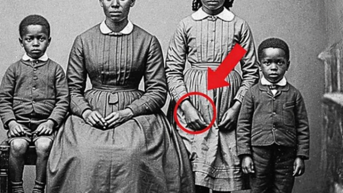 At first, it looked like any other old family photograph: a formally posed couple, their children carefully arranged, all wearing serious expressions shaped by the long exposure times of the era. Yet a subtle, nearly invisible detail caught the eye—and in that moment, the image shifted from a simple portrait into something far more meaningful. Hidden in plain view was a quiet trace of a story long buried, waiting to be discovered.