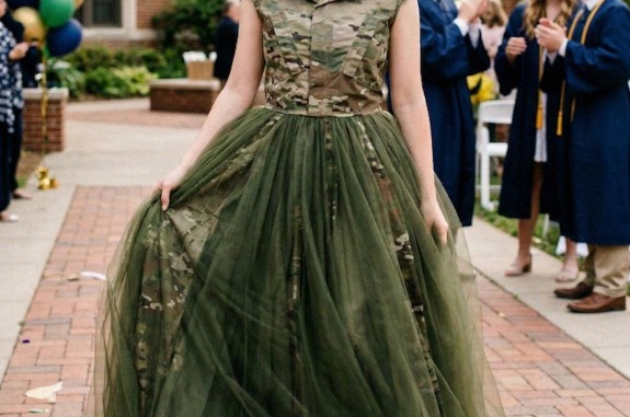 That night, I decided I would wear his uniform to prom—not as it was, but remade, a secret between us. I worked in silence for weeks, stitching under the lamp after finishing chores. I whispered goodnight to him as I went, pouring my heart into every seam.