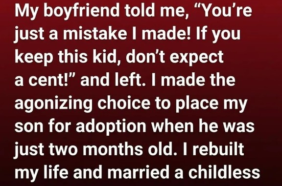 At seventeen, I faced a crossroads I never imagined. Life changed in an instant, and the person I thought would be there for me walked away instead. His words lingered long after he was gone, leaving me alone with a choice far bigger than I felt ready for. Holding my newborn son, I memorized every detail—his gentle breaths, the way his tiny fingers gripped mine. Loving him came naturally, but that love also meant thinking realistically about the future I could give him. After many sleepless nights and a heavy heart, I made the hardest decision of my life: I placed him for adoption, hoping he would have opportunities I wasn’t able to provide.