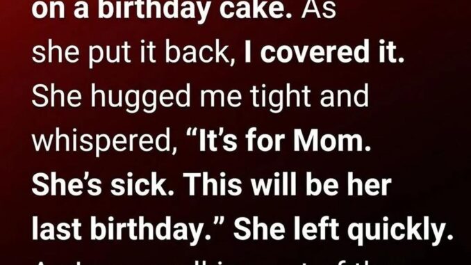 Then, unexpectedly, she stepped closer and gave me a quick, tight hug. In a quiet, slightly shaky voice, she shared that the cake was for her mother, who wasn’t feeling well, and she wanted to do something to make her happy.