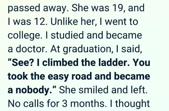 The years passed quickly. I excelled in school. Teachers praised me, mentors encouraged me, and everyone said I had a bright future. One milestone followed another—college acceptance, then medical school, then residency. Each success felt like confirmation that her sacrifices were worth it.