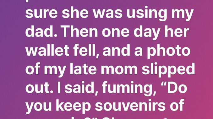 I kept my distance, dismissed every effort she made to connect, and told myself she could never truly honor my mom’s memory. Then one day at the grocery store, her wallet slipped out of her purse, and a small photo of my late mom fell onto the floor. A wave of anger hit me as I picked it up.