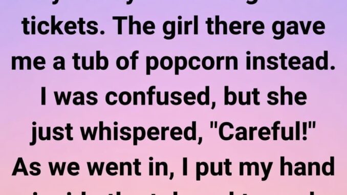 Then, halfway through the film, I reached into the popcorn and felt something unusual—a folded note hidden inside. My heart raced as I opened it in the dim light. It read: “If you’re here with him, please come find me after the movie. You deserve to know the truth.”