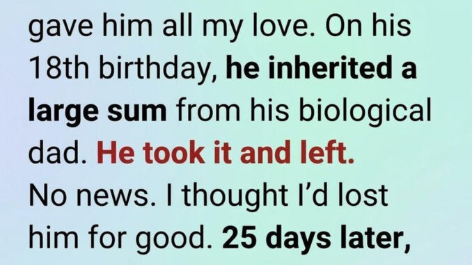 There was something warm and hopeful in her voice that stayed with me as I walked to the door. When I opened it, he was standing there. He seemed older, more confident—but in that moment, he was still the same child I had raised.