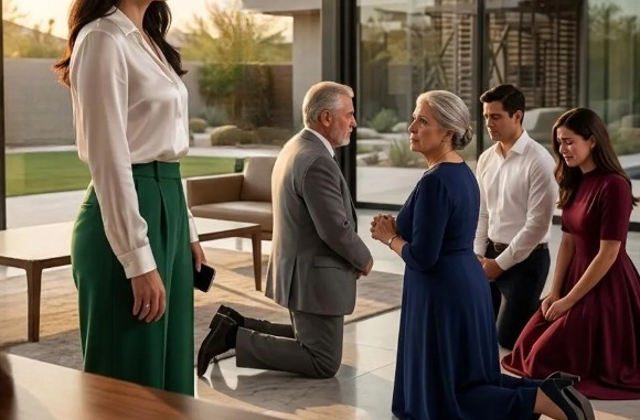 The knocking at the door started just after sunrise—hard, insistent, and unsettling enough to break the calm of the house. I stood halfway down the stairs, frozen, my phone still in my hand, my mother’s words from the night before replaying in my head: Tell them you’ve gone bankrupt. At the time, it had seemed unnecessary. Only a few days earlier, I had sold my company for fifteen million dollars—something that should have felt like success and relief. Instead, it brought sudden attention from my husband’s family: frequent calls, overly friendly visits, and invitations that now felt suspiciously eager.