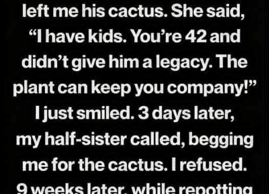 I never told my half-sister about the note. The cactus still sits on my windowsill, growing quietly, reminding me that the most meaningful legacies are often the simplest, carried in small, quiet gestures.