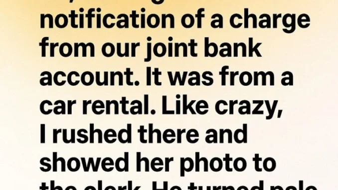 The notification arrived quietly, like most ordinary things do—and that was what made it so unsettling. Eight days had passed since the funeral, eight days in which I was beginning to understand how heavy silence can feel. When I saw the charge from our shared bank account—a car rental—it felt like something reaching out from a place I thought had been sealed shut.