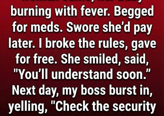 I work evening shifts at a small neighborhood pharmacy—a place people come not only for medicine, but also for comfort. One quiet night just before closing, a woman hurried in carrying a baby wrapped tightly in a blanket. The child’s face was flushed, and even from across the room I could tell the fever was high. Her voice shook as she asked for help, explaining she didn’t have any money but promised to return the next day to pay. I hesitated, aware of the strict rules about giving out medication without payment. But something in her eyes—a mix of fear and hope—made the choice for me. I gave her what she needed. As she turned to leave, she paused, offered a soft smile, and said, “You’ll understand soon.”