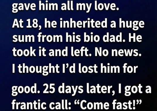 Life continued, as it always does. We settled into routines, shared small jokes, and built a sense of home that felt steady and familiar. Then, when he turned eighteen, we learned that his biological father had left him a significant inheritance. It changed something in him. He accepted it, packed his belongings, and left with little explanation. I told myself he just needed space, that it was part of growing up. Still, the quiet that followed felt heavier than I expected.