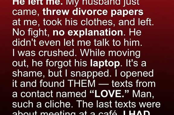 The day my husband walked out, it felt unreal. There were no fights, no signs—just a quiet moment that shattered everything. He handed me papers, grabbed a few things, and left without a word. The silence he left behind screamed louder than anything he could have said. I sat there, replaying memories, searching for a reason that never came. The home we had shared suddenly felt foreign, as if I were living someone else’s life.
