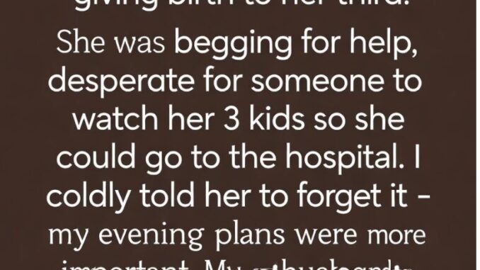 When he returned, his face was pale. “She wasn’t exaggerating,” he said quietly. “She collapsed from exhaustion. The doctors said she hadn’t slept properly in days, trying to care for the newborn and her other two children. She needed us—and we weren’t there.” His words hit me harder than I expected. I lay awake all night, consumed by shame.