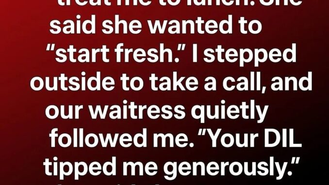 I accepted the invitation to lunch when my daughter-in-law suggested we “start fresh.” It seemed straightforward—a chance to clear up the small misunderstandings that had quietly grown between us. The restaurant felt cozy and inviting, with soft music playing and dishes clinking in the background. At first, we spoke cautiously, choosing our words with care, like two people trying to reconnect. For a moment, it felt like this might be exactly what we needed—a true fresh start.