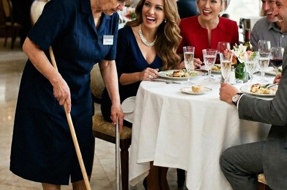 Two flashy couples entered, exuding wealth and entitlement. Their loud, exaggerated conversation carried across the restaurant. I tried to ignore them, but their remarks soon turned cruel. When a wine glass spilled, an elderly cleaning woman bent to clean it. Immediately, the guests began mocking her age, her shoes, and even her presence. Their laughter was sharp and unrelenting.