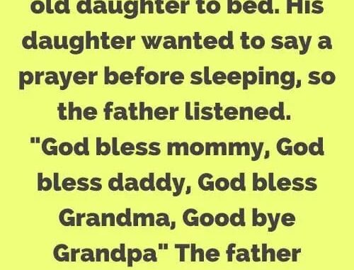 A father was putting his 3-year-old daughter to bed one night. She wanted to say her usual prayer, so he listened as she softly prayed: