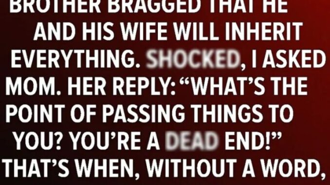 I can’t have children of my own. Last week, at a family dinner, my brother leaned back smugly and declared that he and his wife would inherit everything from our parents one day, as if having kids automatically made him more deserving.